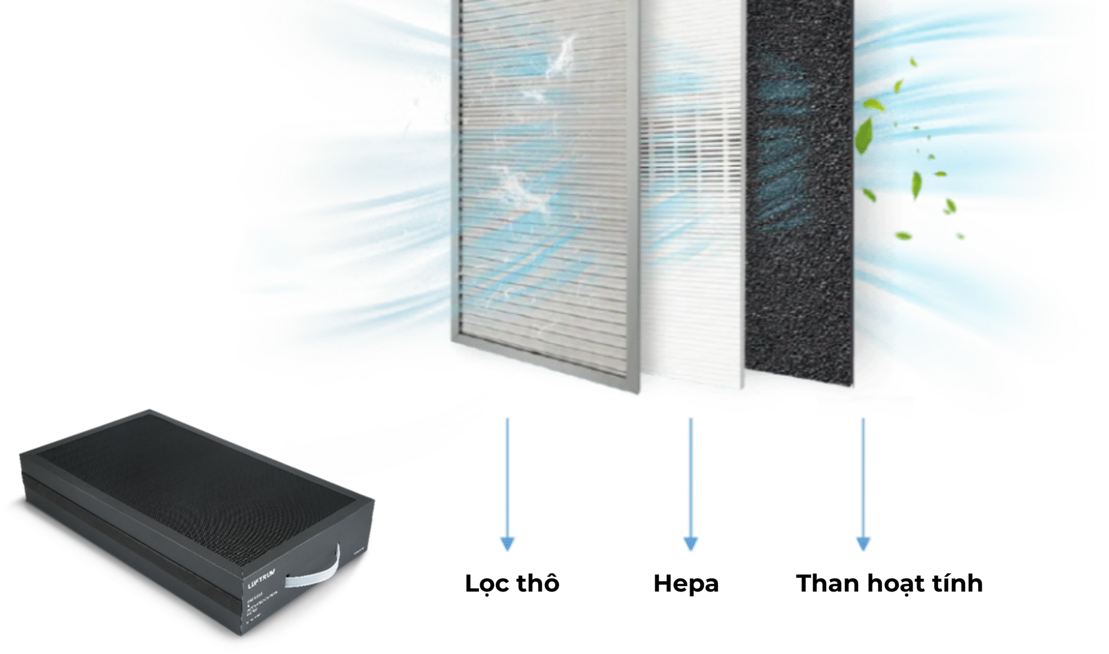 Bộ lọc Hepa H13 + Than hoạt tính vỏ dừa hiệu suất cao